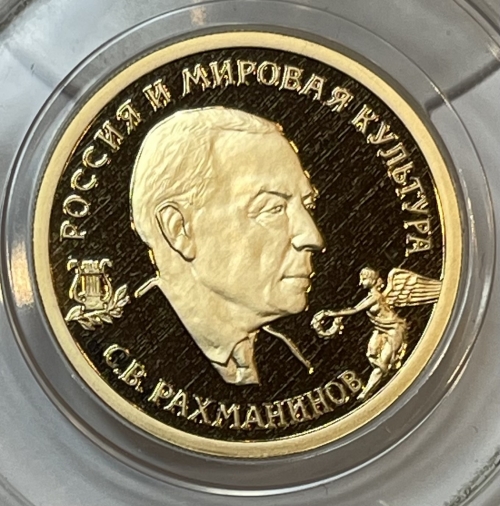Золотая монета 50 рублей "С.В. Рахманинов" 1993г., 7,78 г.,Au 900