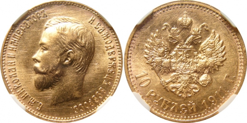 Золотая монета Николая II 10 рублей 1911 год состояние MS63